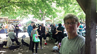 Arriving back at Market, after a year-and-a-half absence, I took note of the changes to the site setup since last I sold my coffee and cookies by the big tree. Food vendors now occupy a separate and apart area of the Market, in full sunlight. It’s very hot there under the canopies that serve as broilers.